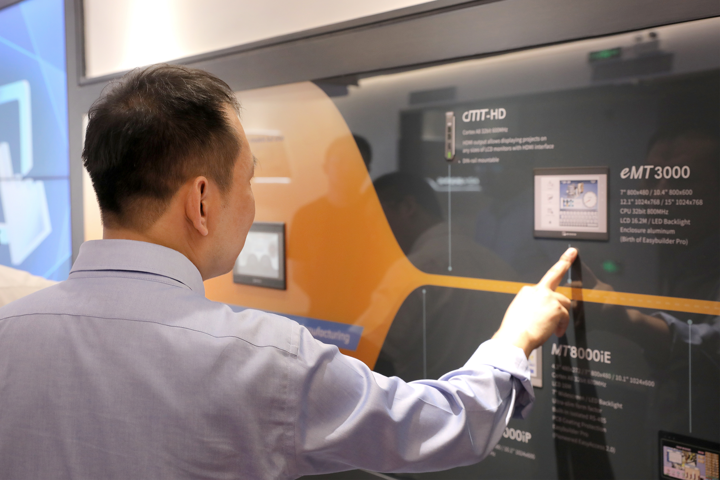 參觀過程中,劉成林向來訪領導介紹了威綸通企業(yè)發(fā)展歷程以及新一代cMT X系列云端監(jiān)控HMI產(chǎn)品,通過現(xiàn)場演示與互動體驗,展示威綸通完全運用自主控制系統(tǒng)(HMI+I/O)結合CODESYS軟PLC方案實現(xiàn)的對現(xiàn)場能源管理、照明、空調(diào)、窗簾、電源、音響等設備進行管理的自動化智能辦公系統(tǒng)。讓HMI與CODESYS相結合的優(yōu)勢展露無余。CODESYS(歐德神思)對威綸通的創(chuàng)新能力和研發(fā)實力給予了高度的認可。