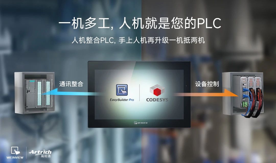 威綸通cMT X系列產品,根據市場及客戶需求,研發創新將PLC可編程控制功能融入HMI,無需新增硬件,HMI與PLC一體化設計。實現一機多工,人機就是您的PLC